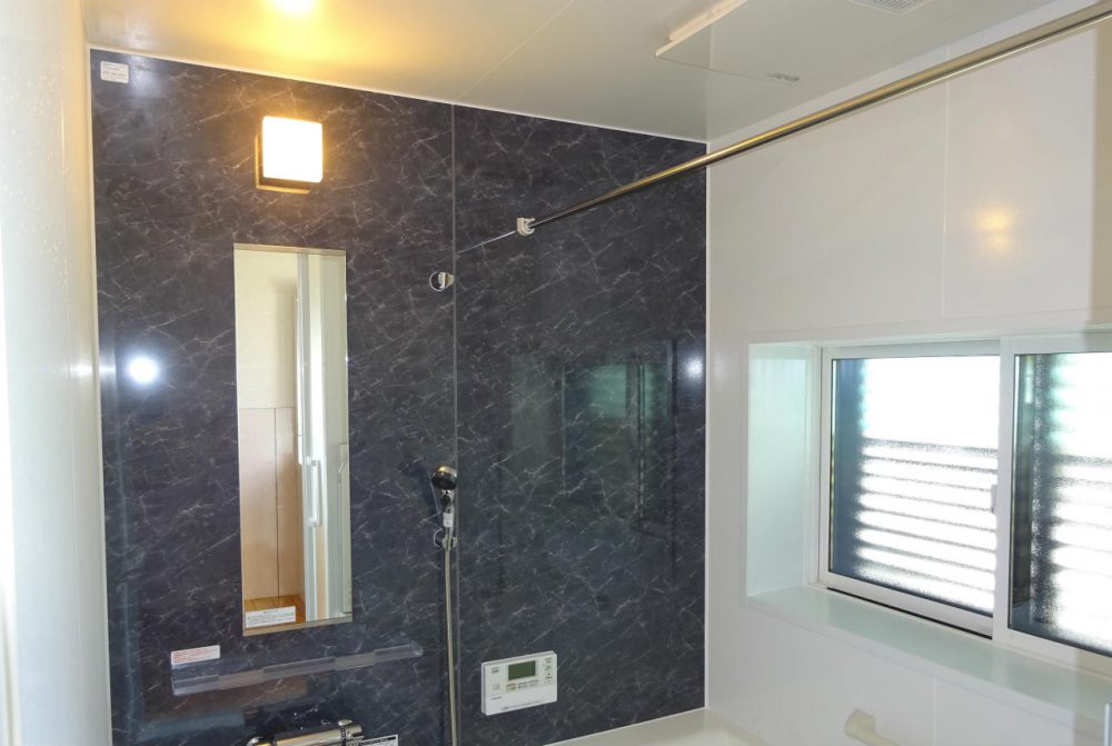 お風呂のリフォームを行いました。 保温性のアップと水はけもしっかり。 カビも生えにくくなって掃除もラクチン。 少し落ち着いた色合いにリフォームです。 シャワーホースもステンレス製なので、気になるカビも抑えられます。