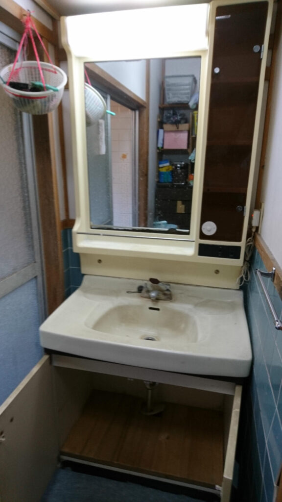 古くなった洗面所の取り替え工事を行いました。