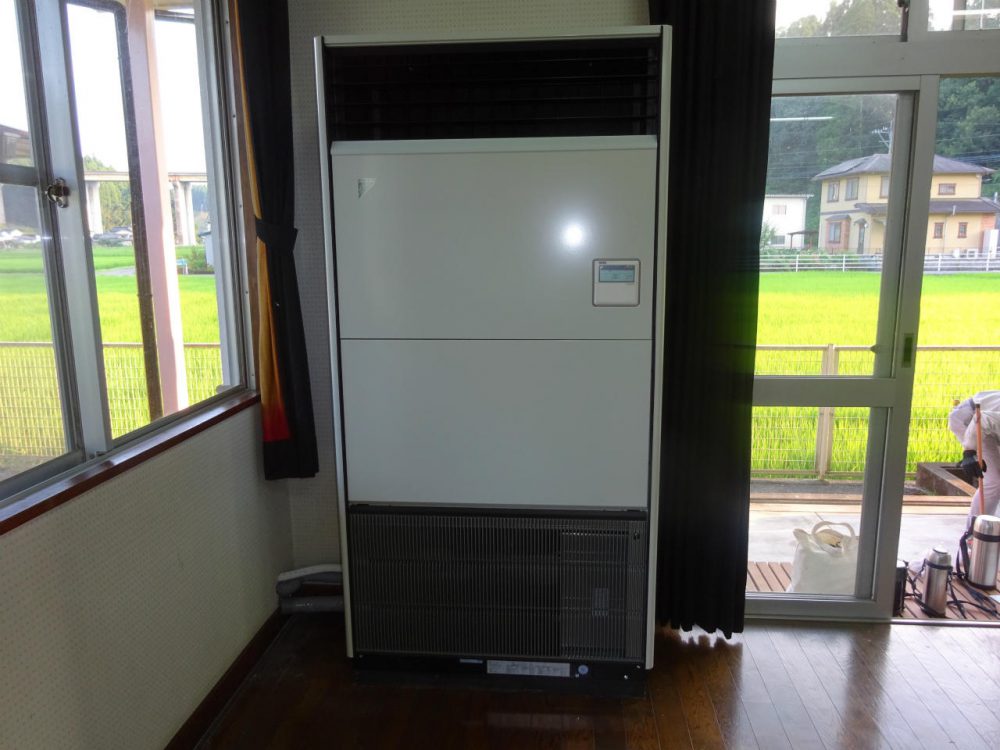 日田市内にある事務所のエアコンが老朽化していたので、取り替えを行いました。