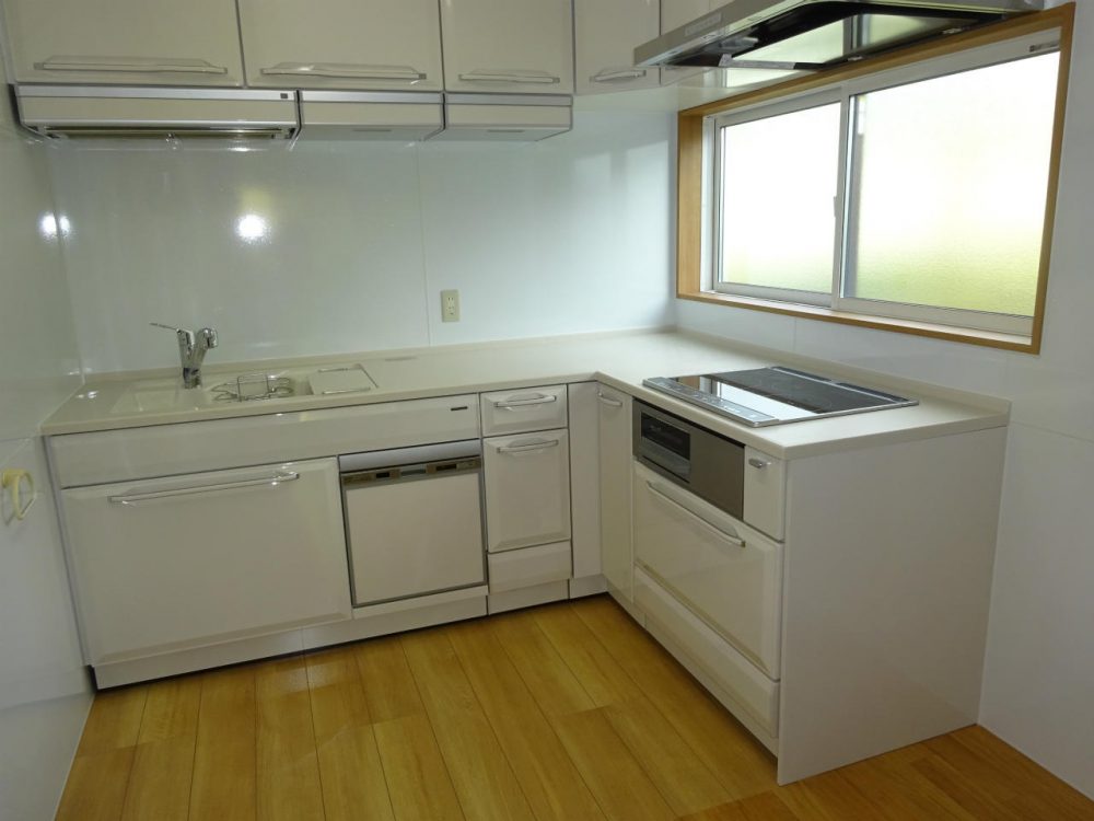 L字タイプのキッチンで収納も引出タイプへ変更です。