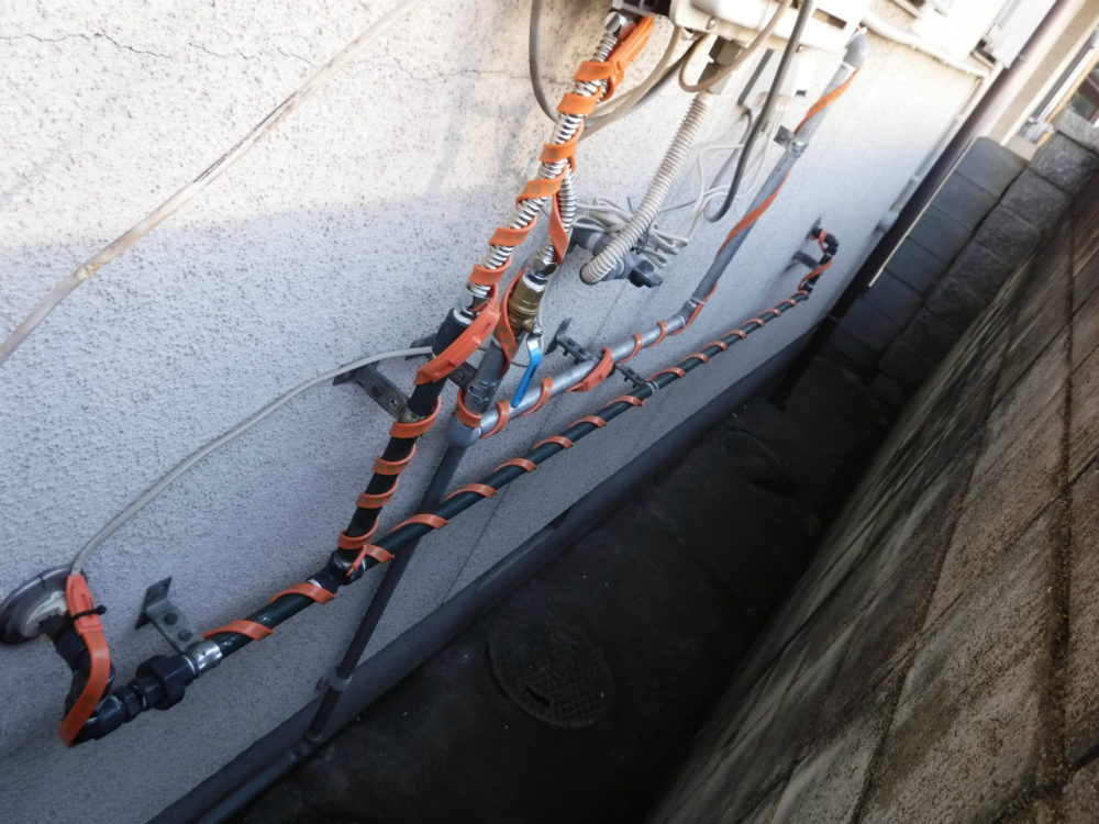 朝から使えない事があったので、老朽化した配管を新しく取り替え、電熱線を巻いて凍結防止を施しました。
