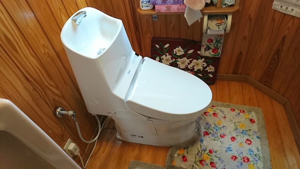 入口の手洗いの撤去を行うために、手洗い一体型のウォシュレットを選びました。