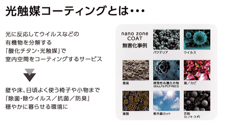 そこで、今回は光触媒を使用し、皆様が安心して過ごせる抗菌空間